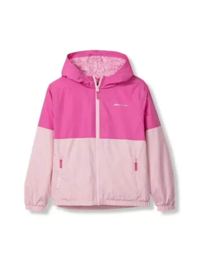 One side of this colorful windbreaker is water-repellent polyester. Turn it inside out, and the soft jersey knit on the other side creates a casual everyday hoodie.
